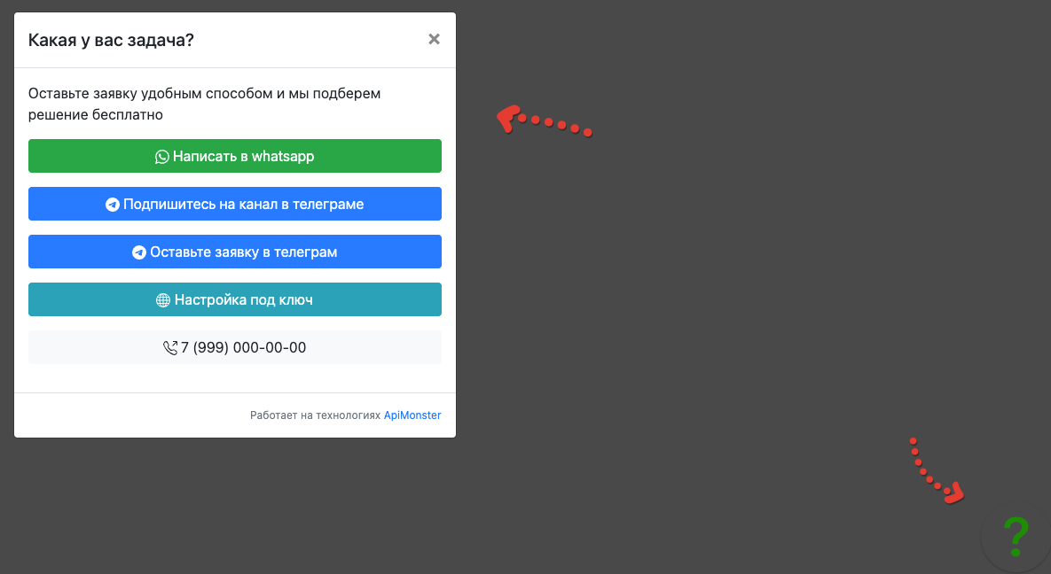 Нажмите на сервис, чтобы посмотреть как он работает в связке с Попап с контактами и трекингом wa/tg (бесплатный).